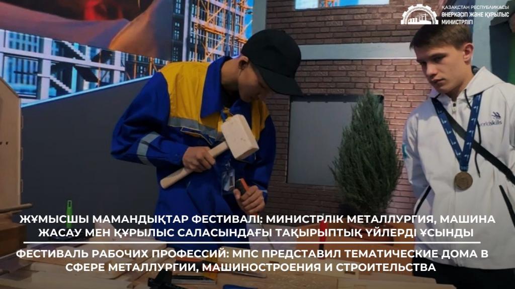 Министерством промышленности и строительства РК на фестивале представлены 13 тематических домов. Это дом геологов, горного дела, обогатителей, черной металлургии, шахтостроителей, цветной металлургии, благородных металлов на улице Горного дела и металлургии. Дом автомобилестроителей и токарей на улице Машиностроителей. А также Дом каменщиков, плиточников и отделочников, кровельщиков и плотников, ландшафтного дизайна, сантехников на улице Строителей. На территории домов представлены интерактивные доски и симуляторы, практические зоны, тренажеры-имитаторы, демонстрируется оборудование и процесс работы.