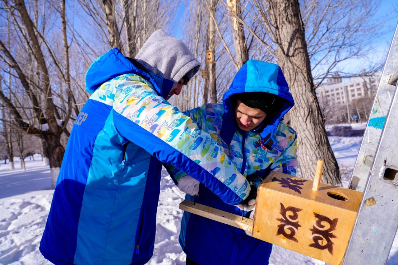 В рамках акции «Таза Қазақстан» студенты Строительно-технического колледжа столицы совместно с волонтерами Молодежного ресурсного центра «Астана Жастары» установили скворечники в парке у мечети имени Аль-Фараби.