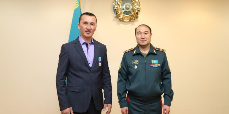 Вице-министр по ЧС генерал-майор Кеген Турсынбаев от имени Министра по чрезвычайным ситуациям вручил медаль «Өртте көрсеткен қайсарлығы үшін» руководителю крестьянского хозяйства «Өркен» Талғату Мұсірәт за мужество и самоотверженность, проявленные при пожаре в жилом доме, спасении жизней.