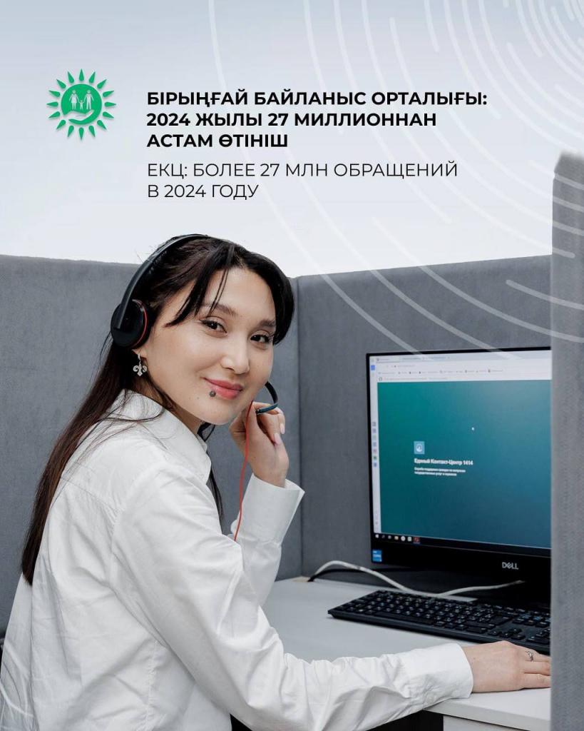 В 2024 году Единый контакт-центр (ЕКЦ) НАО «Госкорпорация «Правительство для граждан» обработал более 27 млн обращений. Ежедневно ЕКЦ принимает от 30 до 90 тысяч обращений: звонков на номер 1414, cообщений в чат-бот EgovKzBot 2.0 в Telegram, на электронную почту support@goscorp.kz, посредством видеозвонков через мобильное приложение «ЦОН». В один из дней в ЕКЦ был зафиксирован максимальный показатель за весь период работы с 2011 года – 120 тысяч обращений.