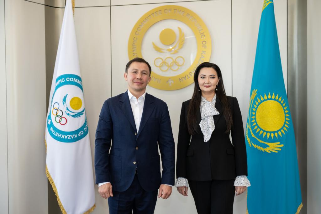 Президент Национального Олимпийского комитета Республики Казахстан Геннадий Головкин встретился с главой Казахстанской федерации гимнастики Алией Юсуповой.