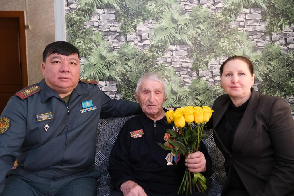 Фронтовика Василия Ивановича Григораша в день его 99-летия навестили военнослужащие департамента по делам обороны Павлодарской области и представители местных исполнительных органов.