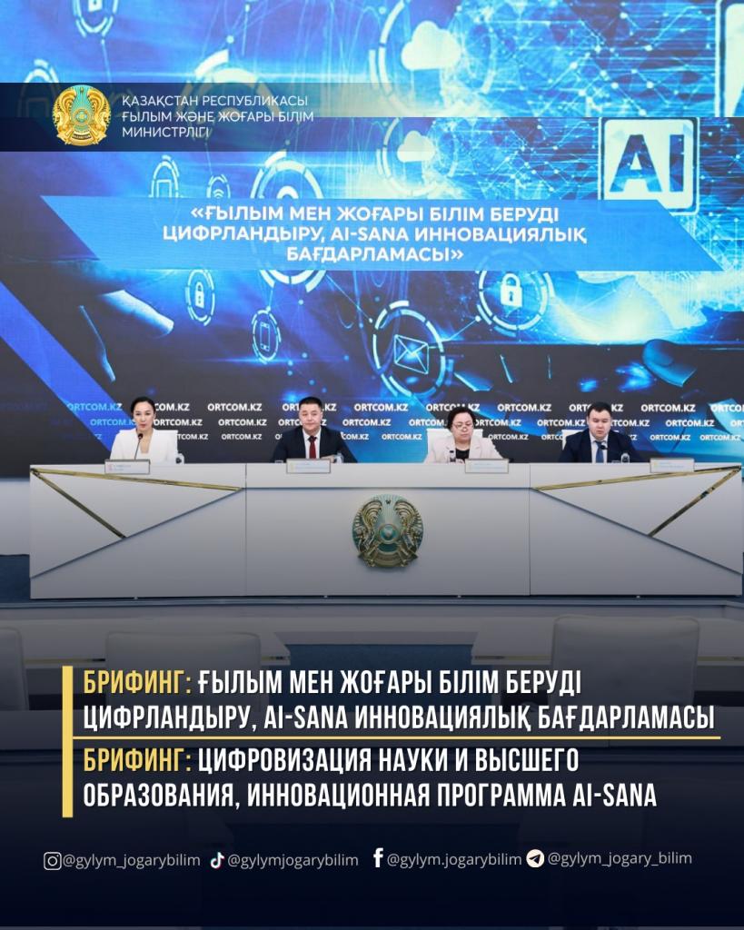 Сегодня, 24 февраля, в Службе центральных коммуникаций при Президенте РК прошла пресс-конференция на тему «Цифровизация науки и высшего образования, инновационная программа AI-Sana».