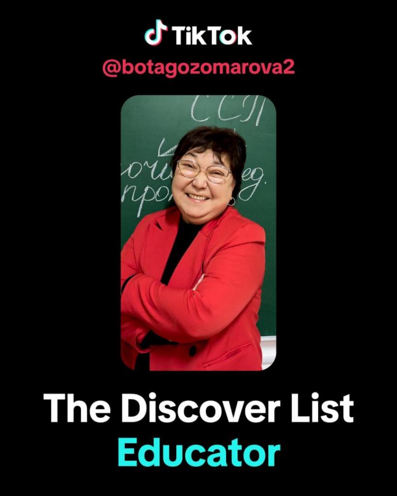 Учитель русского языка и литературы Ботагоз Омарова из Казахстана получила международное признание, войдя в Discover List 2025 от TikTok. Discover list — это список из 50 выдающихся креаторов платформы со всего мира — от США до Австралии, от Японии до Южной Африки, — оказавших значительное влияние на TikTok и его сообщество.