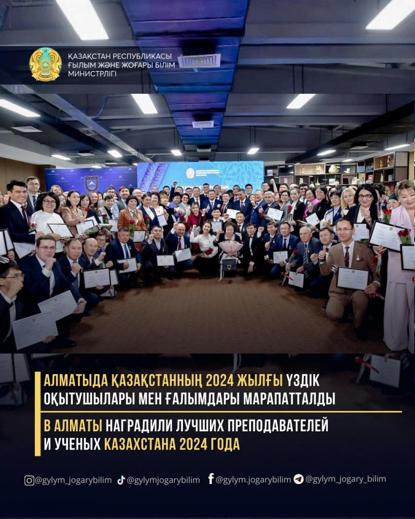 Сегодня в Алматы на базе Казахского национального университета имени аль-Фараби прошла церемония награждения победителей конкурса «Лучший преподаватель вуза – 2024 года» и «Лучший научный работник – 2024».