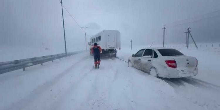 Силами Департамента по чрезвычайным ситуациям проведены аварийно-спасательные работы. Спасатели из снежных заносов отбуксировали на очищенный участок дороги 152 автотранспортных средства, в которых находилось 362 человека. Пострадавших нет.