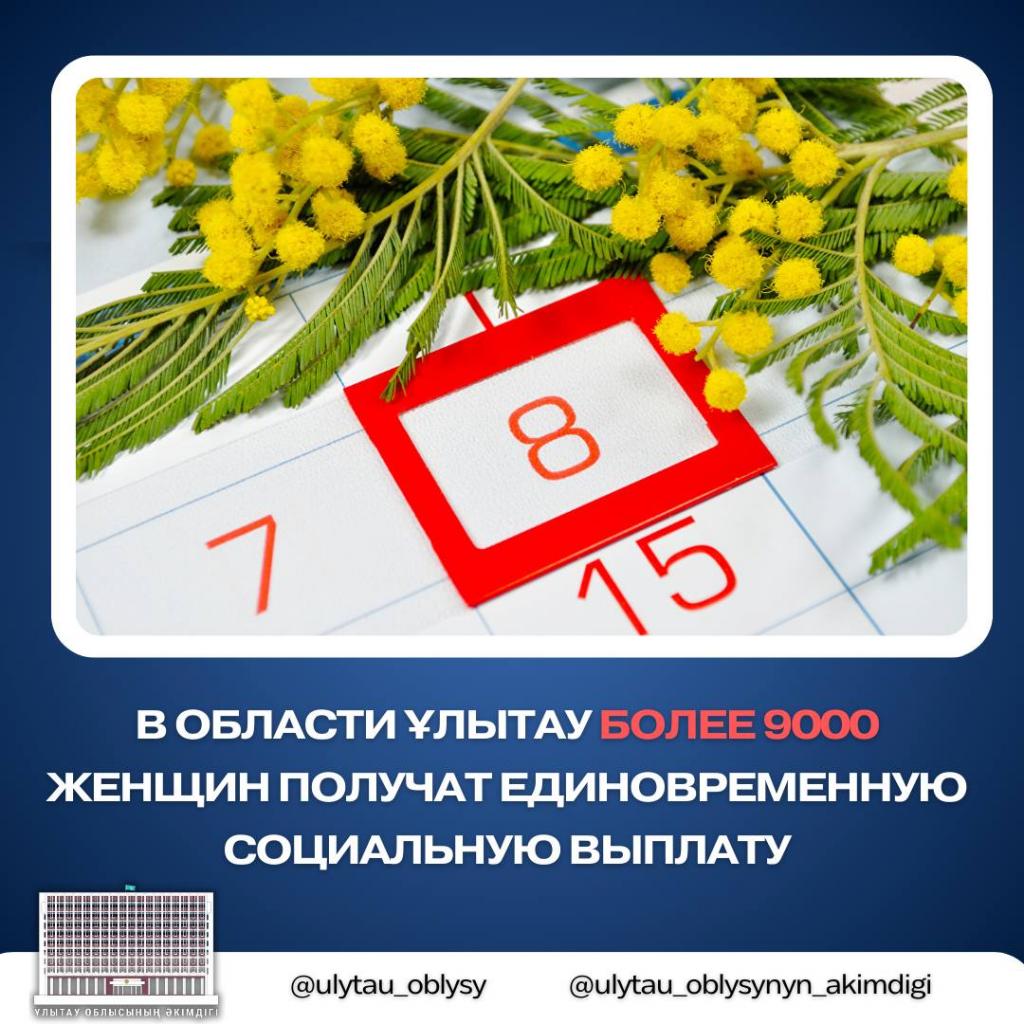 Ко Дню 8 Марта предусмотрена единовременная социальная выплата в размере 20 000 тенге.