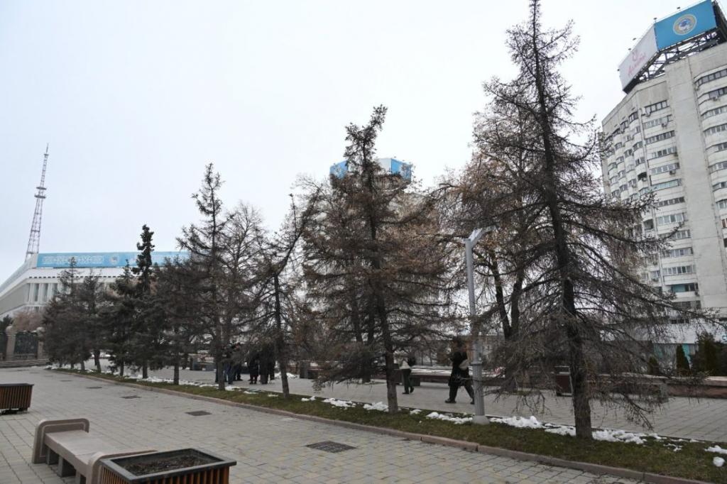 «В связи с потерей декоративных качеств и ослабленным состоянием деревьев по пр.аль-Фараби, рекомендуется их замена на более устойчивые хвойные породы. Кроме того, замена необходима из-за опасности обрушения аварийных деревьев на пешеходов и автомобилистов», — сказал Нуржан Мухамадиев.