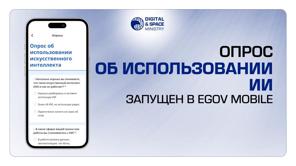 С 3 по 9 марта Министерство цифрового развития проводит опрос среди граждан об использовании технологий искусственного интеллекта (ИИ). Участие можно принять через мобильное приложение eGov mobile, в разделе «Уведомления».