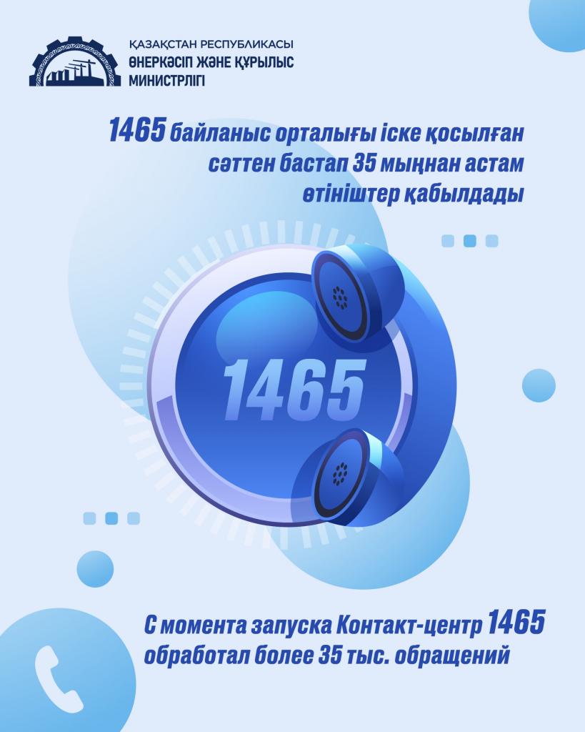 С момента запуска, контакт-центр 1465 Министерства промышленности и строительства Республики Казахстан обработал более 35 тыс. обращений.