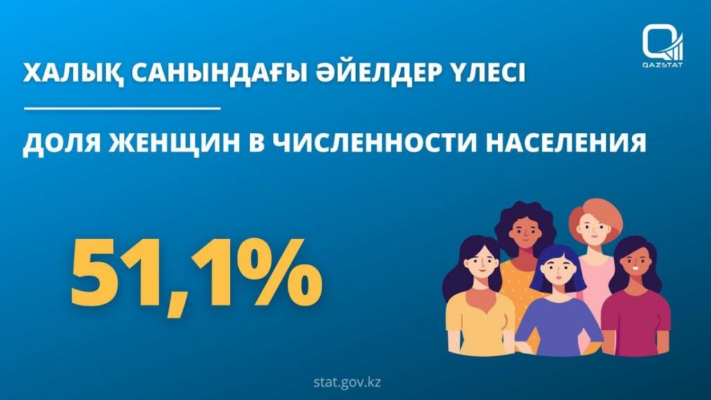 Лидером среди регионов по численности женского населения является Алматы, где проживает 1,2 млн женщин. Второе место занимает Туркестанская область с 1 млн женщин, а на третьем месте — Астана с 803 тысячами представительниц прекрасного пола.