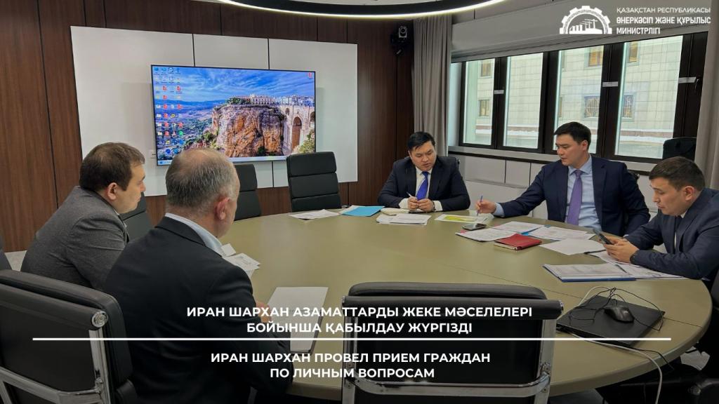 Сегодня вице-министр промышленности и строительства РК Иран Шархан провел прием граждан по личным вопросам в Центре приема граждан Правительства.