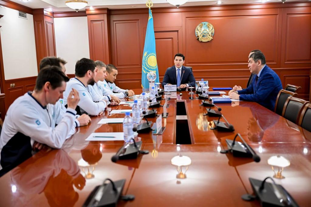 Министр туризма и спорта Республики Казахстан Ербол Мырзабосынов встретился с чемпионом мира по пара биатлону Ерболом Хамитовым, серебряным призером Александром Герлицем и тренерами национальной сборной. Министр поздравил спортсменов с историческими достижениями на международной арене, отметив важность этой победы для отечественного спорта и что развитие паралимпийского спорта в стране находится в центре внимания Главы государства.
