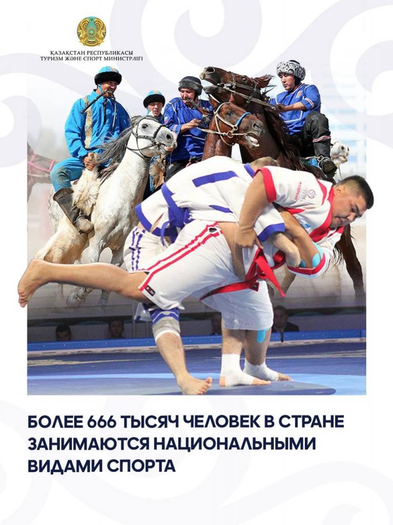 В Казахстане продолжается активное развитие национальных видов спорта. Согласно статистическим данным, в 2023 году число систематически занимающихся традиционными дисциплинами составило 619,2 тыс. человек, а в 2024 году этот показатель вырос до 666,1 тыс. человек. Доля спортсменов, практикующих национальные виды спорта, составила 9,6% от общего количества занимающихся физической культурой и спортом.