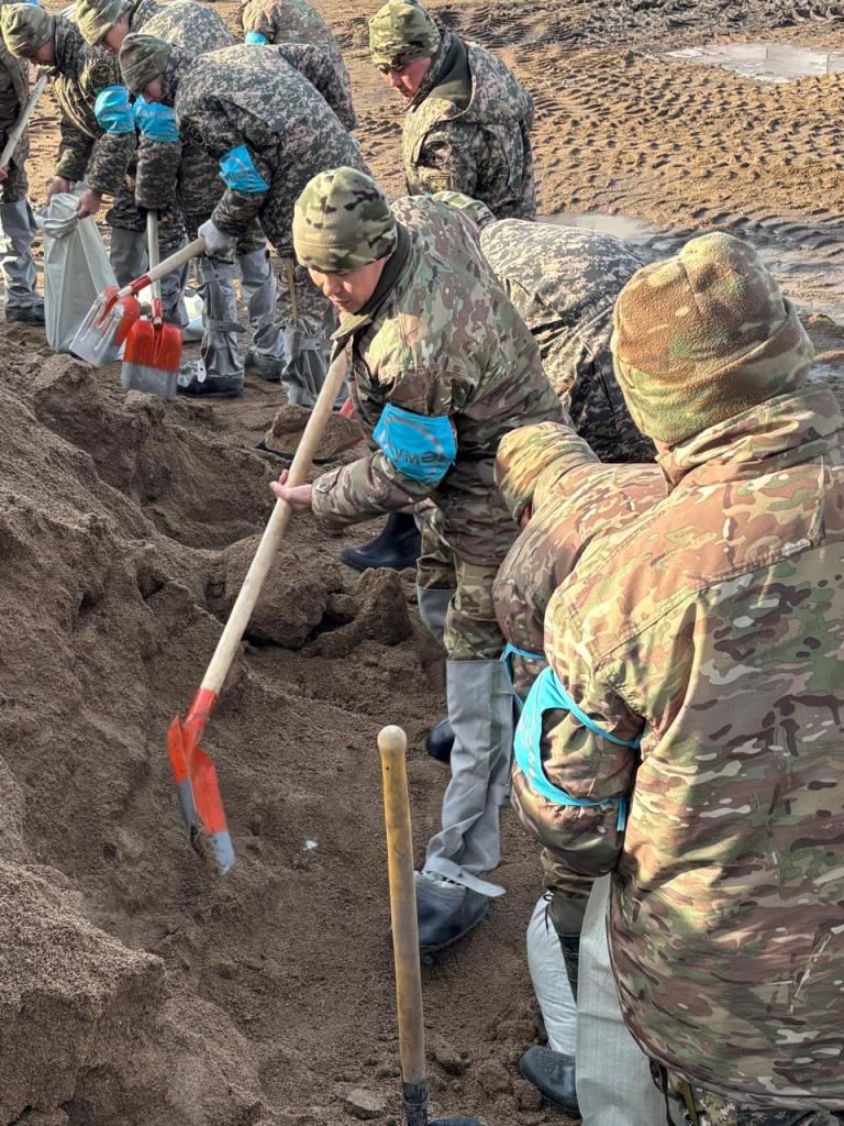 В Костанайской области бойцы местной бригады занимаются укреплением береговой линии реки Убаган в селе Новоселовка. В Западно-Казахстанской области военнослужащие бригады территориальной обороны работают в поселке Каратобе.