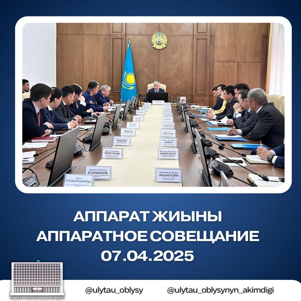 Под председательством акима области Ұлытау Дастана Рыспекова состоялось очередное аппаратное совещание. В повестке дня рассматривались вопросы исполнения бюджета за I квартал 2025 года, санитарной очистки и планирования весенней посадки деревьев.