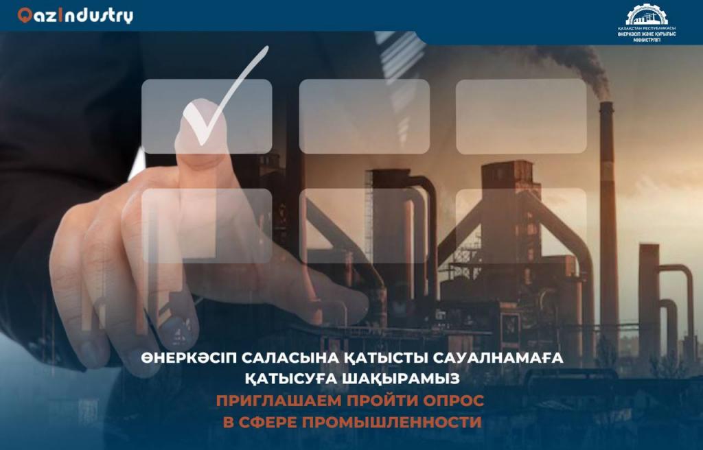 Министерство промышленности и строительства Республики Казахстан совместно с АО «КЦИЭ «QazIndustry» приглашает промышленные предприятия принять участие в масштабном анкетировании. Опрос нацелен на улучшение деятельности субъектов в сфере промышленности.
