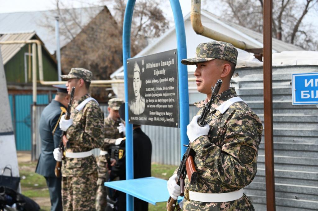Благодарные земляки пришли к мемориальной доске, установленной в память о солдате Великой Отечественной войны, Герое Советского Союза Имангали Билтабанове, которому 10 апреля исполнилось бы 100 лет. Мероприятие собрало военнослужащих, ветеранов Вооруженных сил, участников войны в Афганистане, а также родных и близких героя.