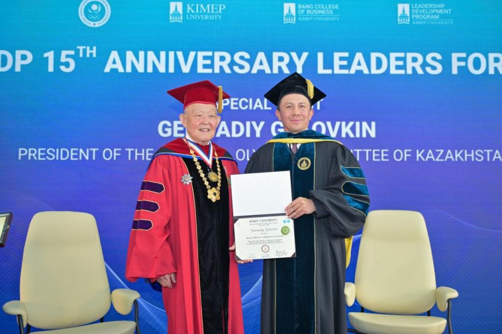 В рамках визита Геннадию Головкину было официально присвоено звание почётного доктора Университета КИМЭП — в знак признания его выдающегося вклада в укрепление международного авторитета Казахстана. Такая почётная степень вручается в международной академической практике за исключительные заслуги, оказавшие значительное влияние на развитие общества, культуры и международных связей. Благодаря достижениям Геннадия Головкина миллионы людей по всему миру узнали о Казахстане, его ценностях и потенциале.