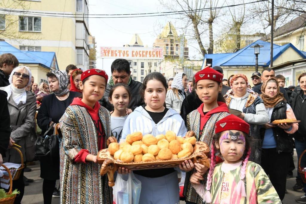 Мероприятие прошло на площади перед Монастырским храмом в честь праздника Пасхи. После торжественной литургии и крестного хода на территории храма состоялся символический обмен угощениями. Дети прихожан дарили пришедшим в гости представителям других конфессий пасхальные яйца. В свою очередь гости принесли бауырсаки.