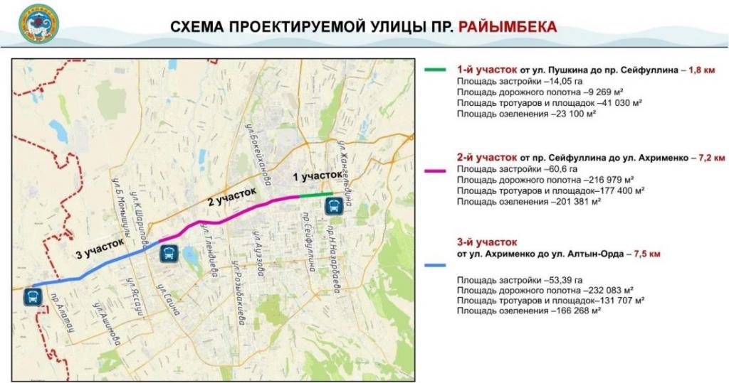 - пр. Сейфуллина — ул. Ахрименко (7,2 км)