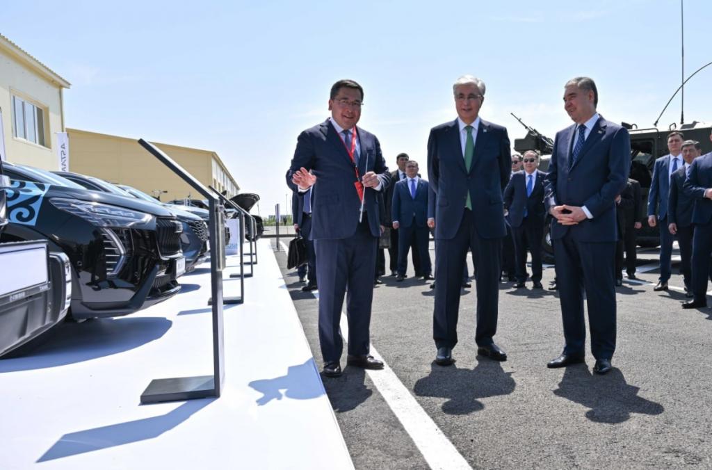 Касым-Жомарт Токаев и Гурбангулы Бердымухамедов ознакомились с выставкой казахстанских производителей, представляющих космическую отрасль, машиностроение, металлургию, строительную индустрию, легкую, пищевую и химическую промышленность.