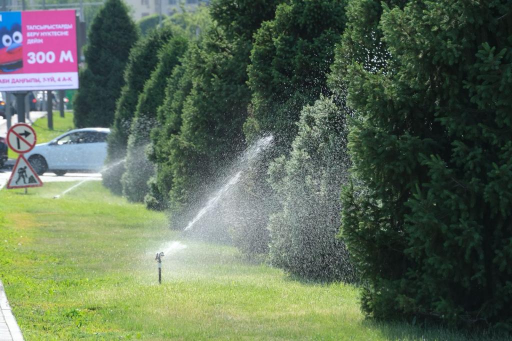 Аппарат акима района реализует проект по строительству системы полива с обеих сторон проспекта — на южной и северной, а также проводит озеленение центральной разделительной полосы.