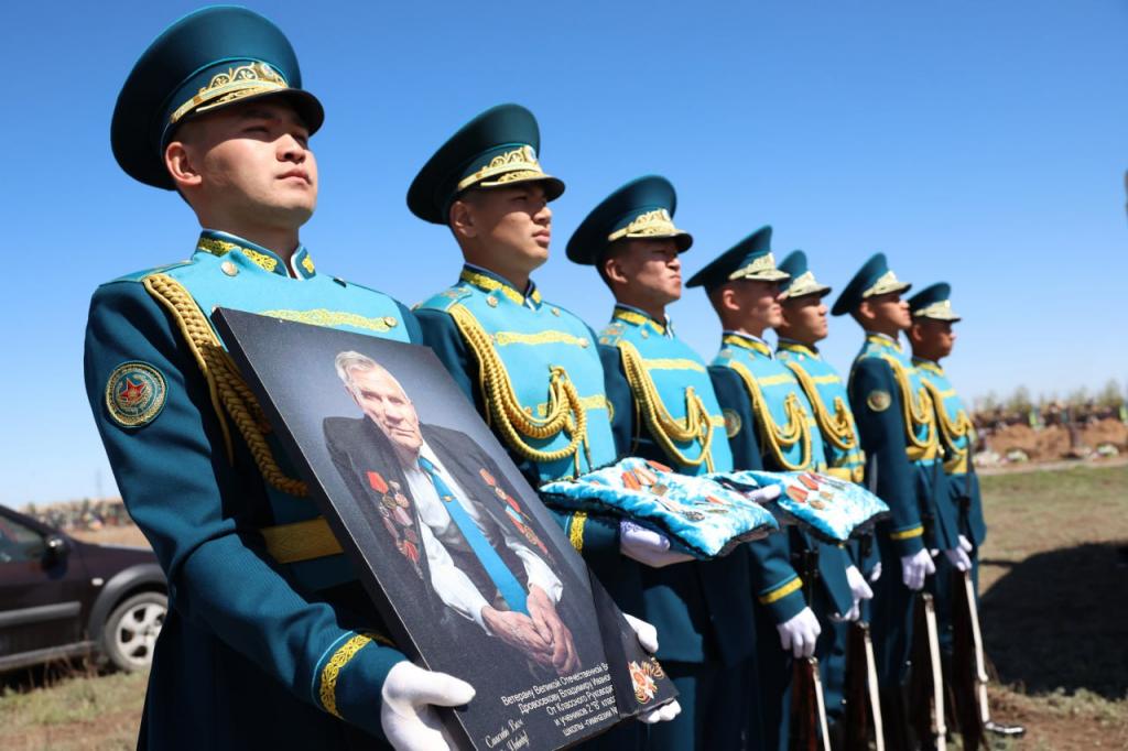 В церемонии прощания с фронтовиком приняли участие представители городского Совета ветеранов, управления занятости и социальной защиты акимата г. Астаны и военнослужащие. Тело покойного вынесли воины роты почетного караула в сопровождении военного оркестра.