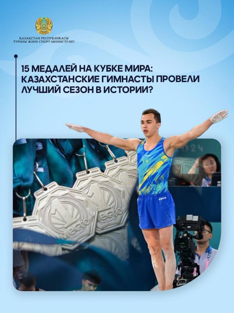 Завершилась серия из шести этапов Кубка мира по спортивной гимнастике — и для сборной Казахстана это, без сомнения, один из самых ярких сезонов за последние годы. Наши спортсмены показали рекордный результат, завоевав 15 медалей: 7 золотых, 4 серебряных и 4 бронзовых.