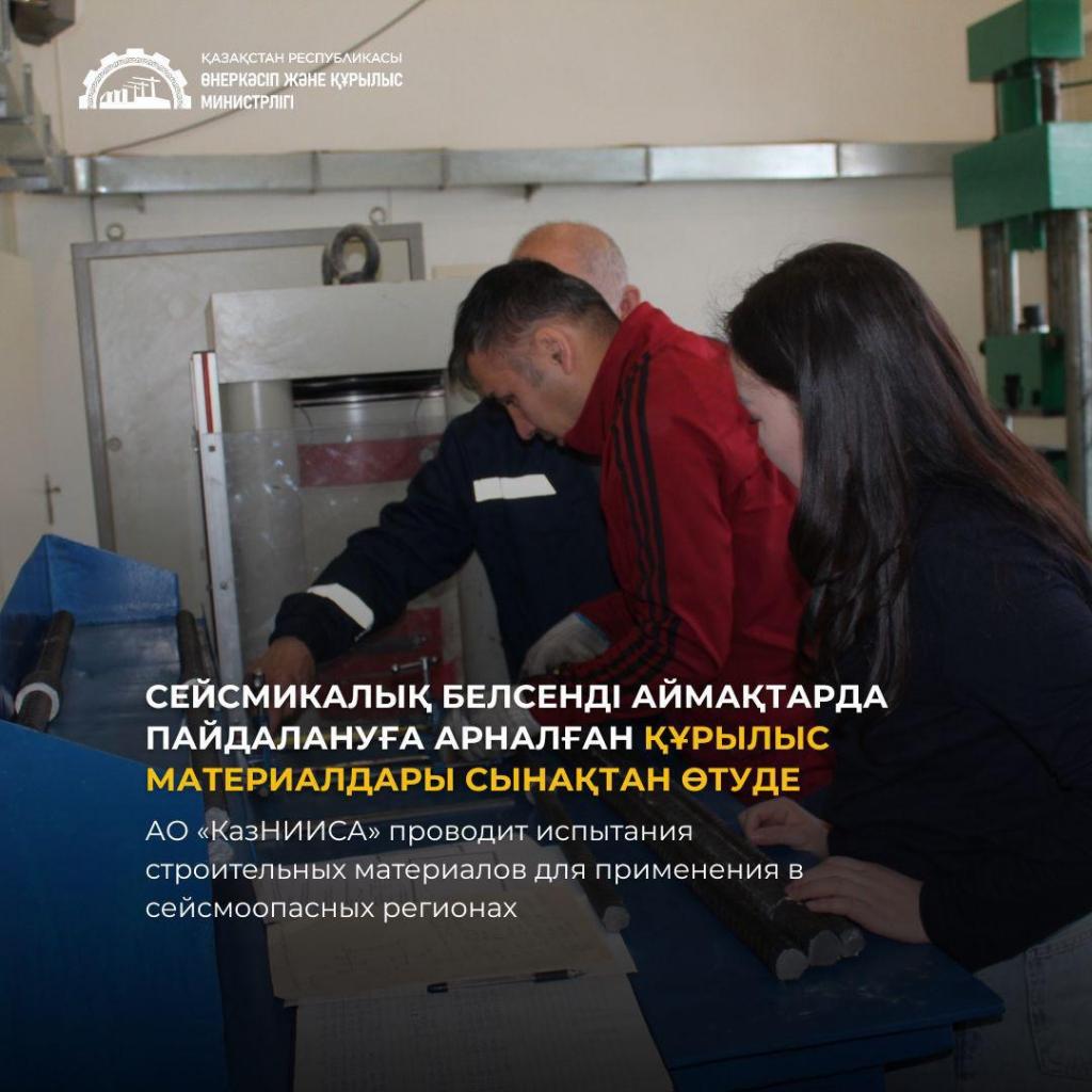 Специалисты АО «КазНИИСА» проводят лабораторные исследования арматурных стержней диаметрами 20, 22, 25, 28 и 32 мм по заказу компании ООО «ЗСОМС «ГРАД».