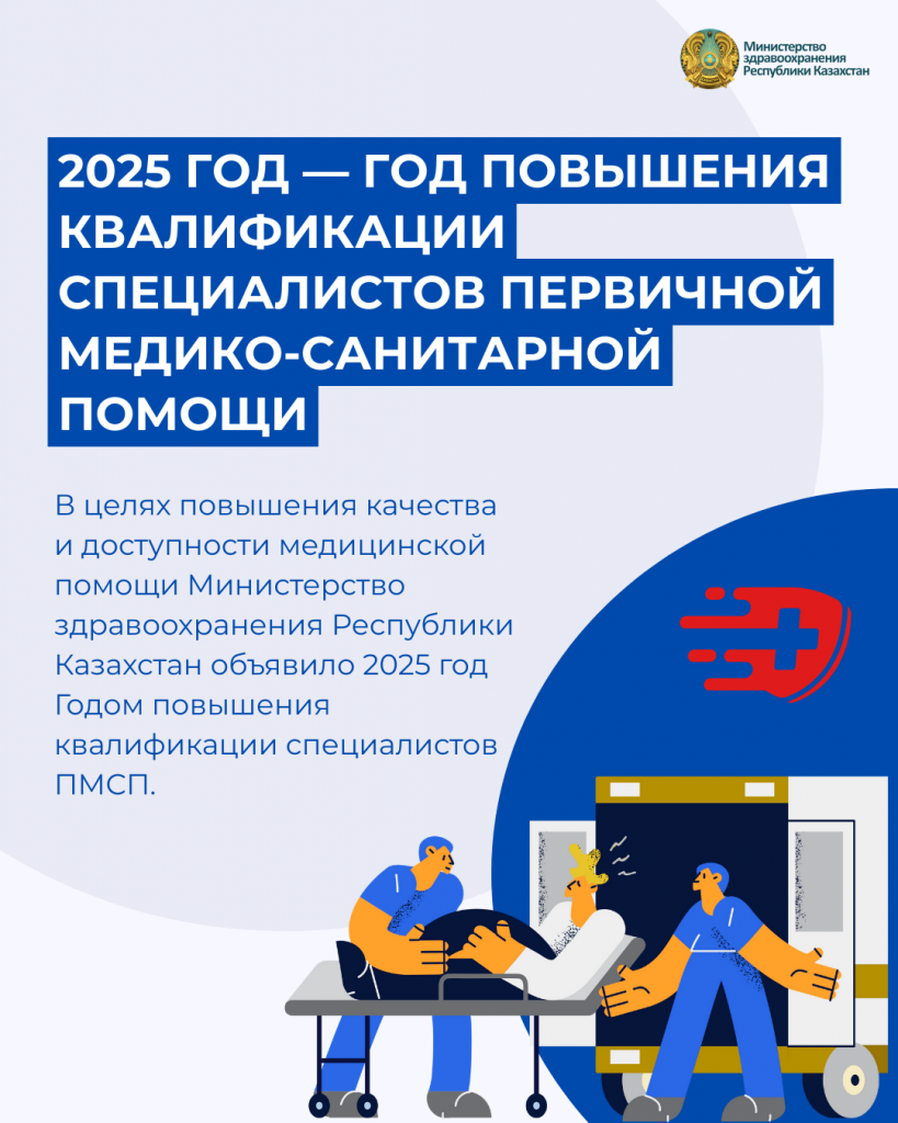В целях повышения качества и доступности медицинской помощи Министерством здравоохранения Республики Казахстан 2025 год объявлен Годом повышения квалификации специалистов первичной медико-санитарной помощи (ПМСП).