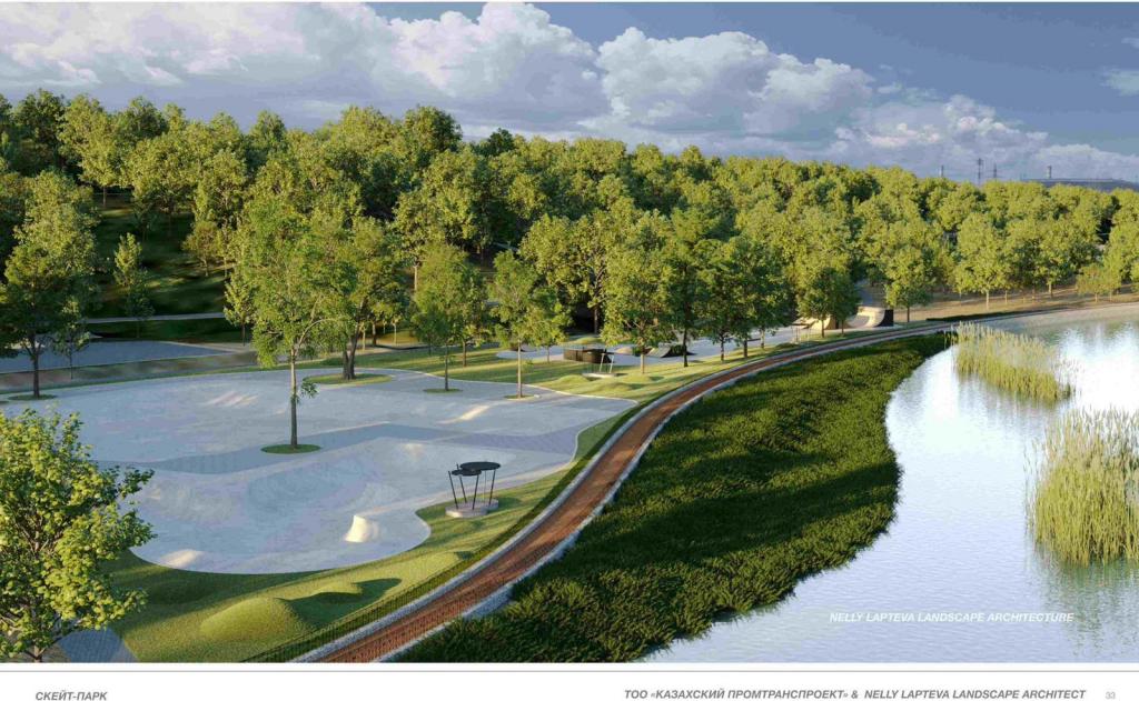 На сегодня на 90% выполнены работы по благоустройству территории вокруг озера Сайран. Здесь было высажено 200 крупных деревьев, высотой более 6 метров, привезенных из питомника «Lorberg» (Германия), а также 3 300 кустарников.