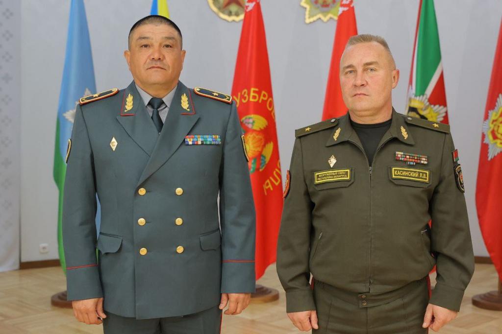 Заместитель министра обороны Казахстана генерал-майор Шайх-Хасан Жазыкбаев провел переговоры с помощником министра обороны по идеологической работе в Вооруженных силах – начальником главного управления идеологической работы Министерства обороны Беларуси генерал-майором Леонидом Касинским.