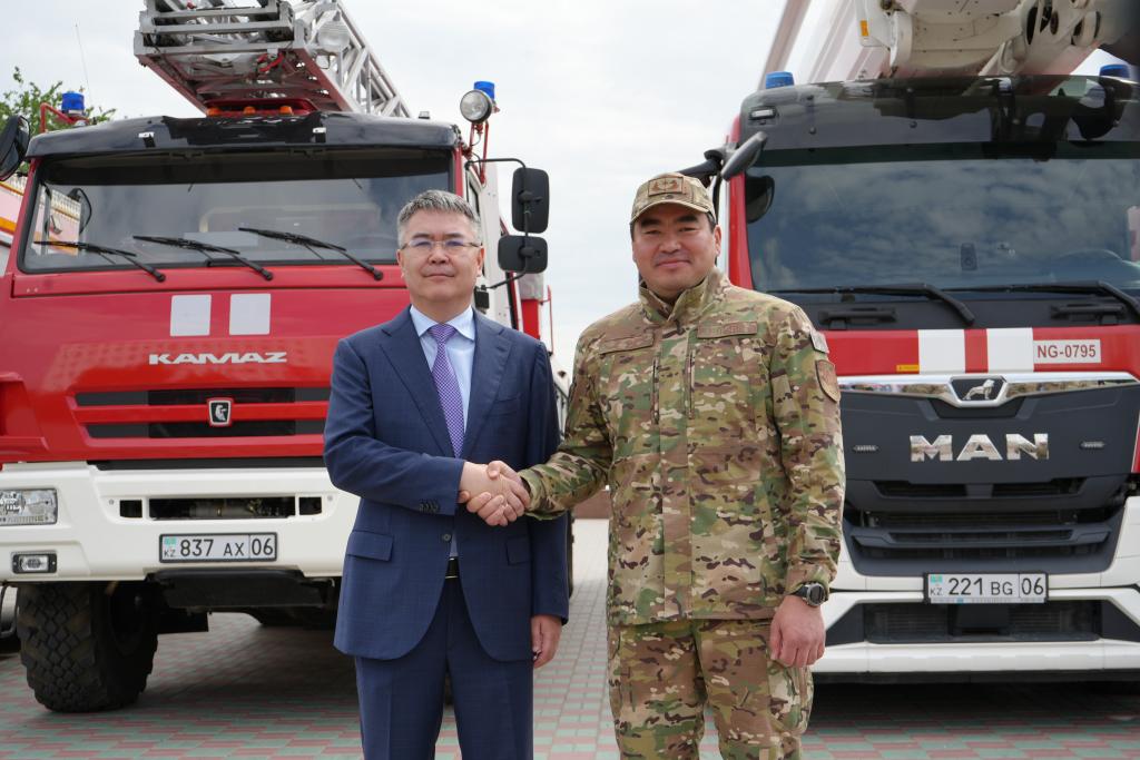Сегодня в Атырау прошла торжественная церемония, на которой спасатели региона получили новую технику. Вручение специализированных автомобилей состоялось в рамках рабочей поездки Министра по чрезвычайным ситуациям Республики Казахстан генерал-майора Чингиса Аринова. В мероприятии также приняли участие аким Атырауской области Серик Шапкенов, сотрудники Департамента по чрезвычайным ситуациям и ветераны гражданской защиты.