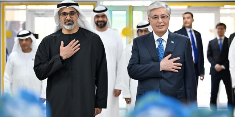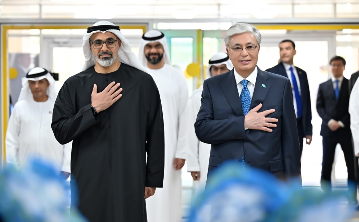 Касым-Жомарт Токаев и шейх Халед бен Мухаммед осмотрели кабинет арабского языка. Учащиеся школы продемонстрировали высоким гостям свои познания в изучении арабского языка и литературы.