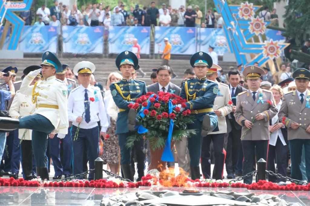 Аким Алматы Ерболат Досаев с фронтовиками принял участие в торжественной церемонии возложения цветов к Вечному огню.