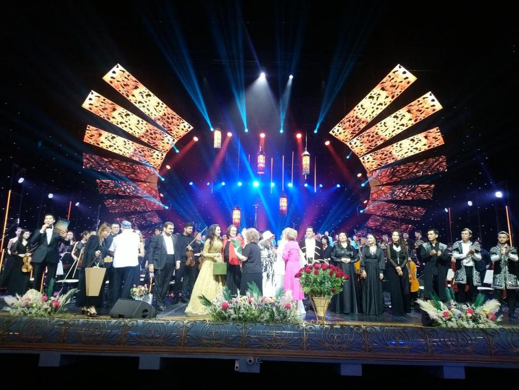 Зарина Алтынбаева меняла национальные костюмы для исполнения песен разных народов, а когда вышла в традиционном расшитом золотом синем шапане, сказала, что сцена оперного театра для неё священна, как и наша Ана-Жер. Шапан, что накинут на ней, подарен нашей любимой народной певицей Бибигуль Ахметовной Тулегеновой и служит её талисманом и оберегом. Затем под бурные овации зала исполнила «коронную» песню Бибигуль «Гәкку».