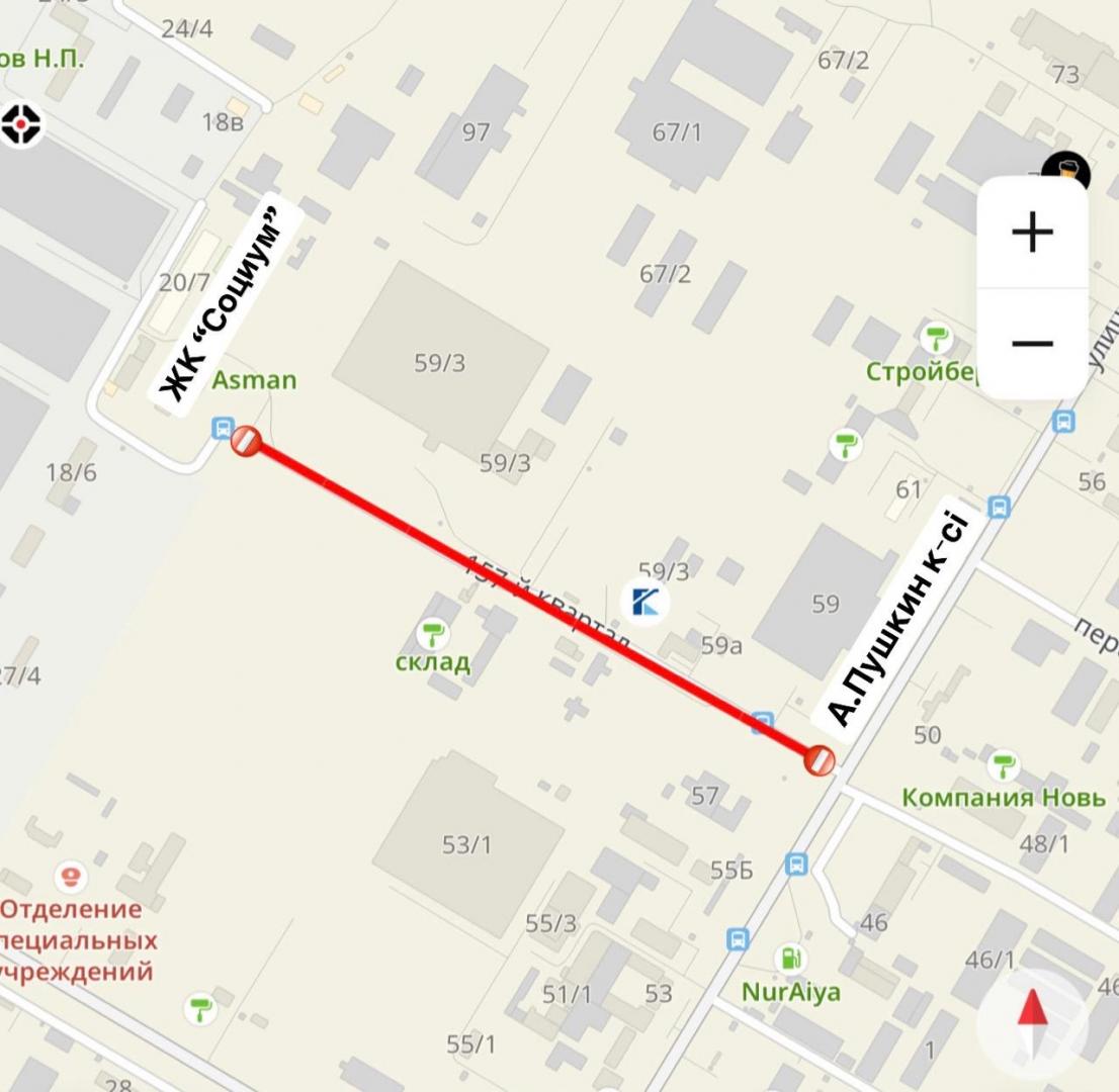 Дорогу к ЖК «Социум» от улицы А. Пушкина частично перекроют в Астане