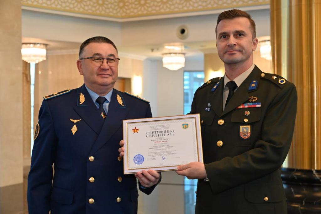 После оглашения приказа начальника Национального университета обороны Республики Казахстан генерал-майора Аскара Мустабекова о прохождении курса языковой подготовки на русском языке слушателям вручили сертификаты.