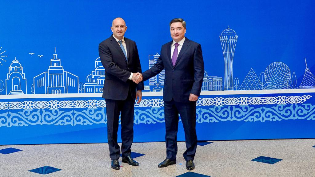 Премьер-министр Республики Казахстан Олжас Бектенов и Президент Болгарии Румен Радев, прибывший в страну с первым официальным визитом, обсудили вопросы реализации договоренностей, достигнутых в ходе переговоров глав двух государств.