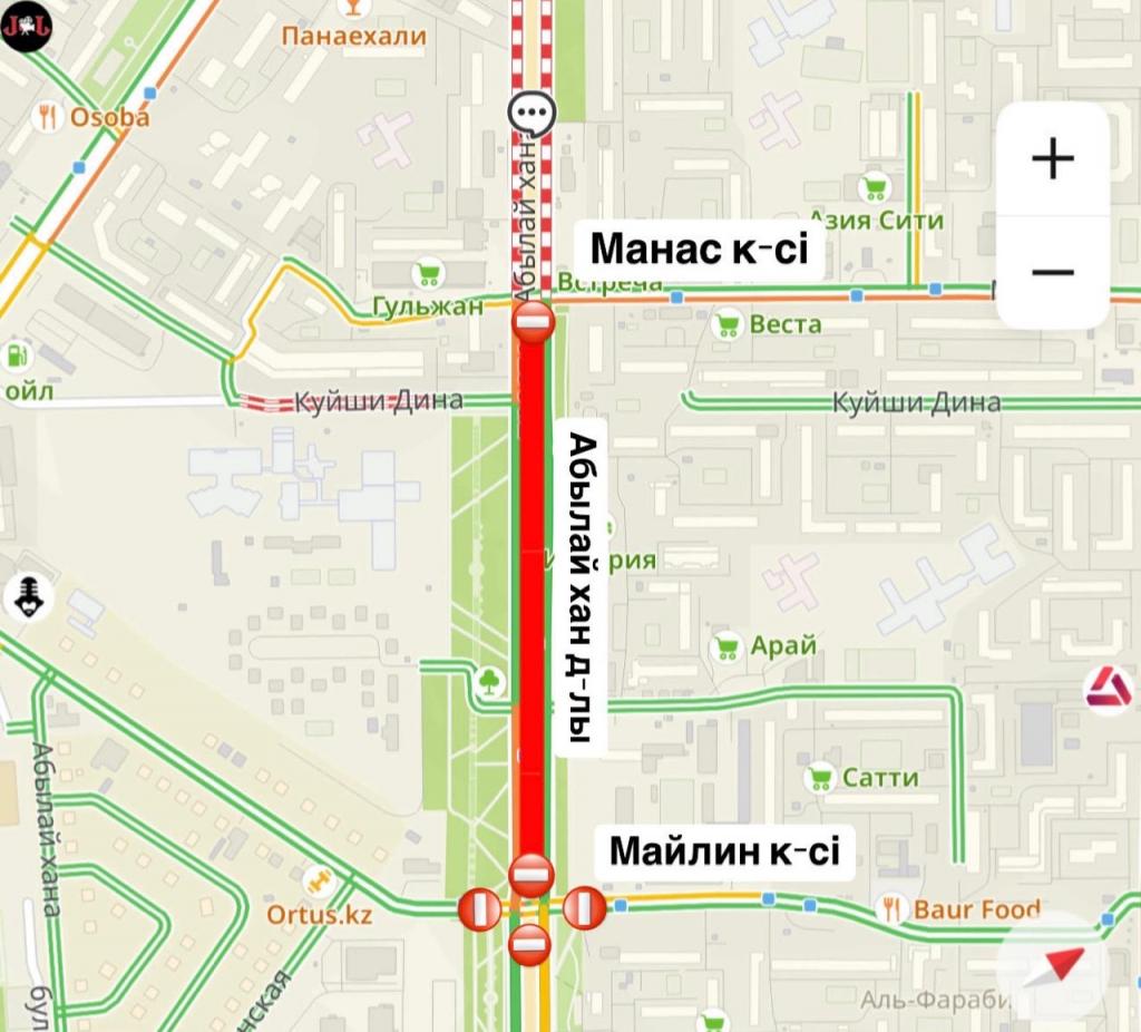 Вместе с тем, перекресток пр. Абылай хана/ул. Майлина будет также закрыт.
