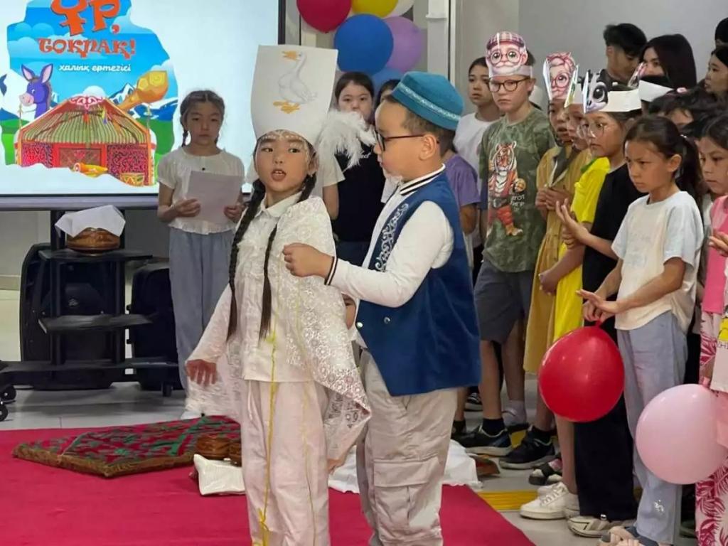 Дети подготовили постановки по мотивам народного фольклора. Русскоязычный отряд представил «Колобка», а казахскоязычный — сказку «Ұр тоқпақ».