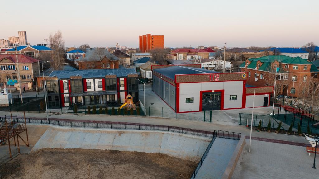 В начале текущего года в городе Атырау завершено строительство нового современного комплекса оперативно-спасательного отряда ДЧС Атырауской области. Станция расположена на берегу реки Жайык и оснащена по последним техническим стандартам. Комплекс включает административное здание, ангар для спасательной техники и общежитие для круглосуточного проживания дежурной смены.