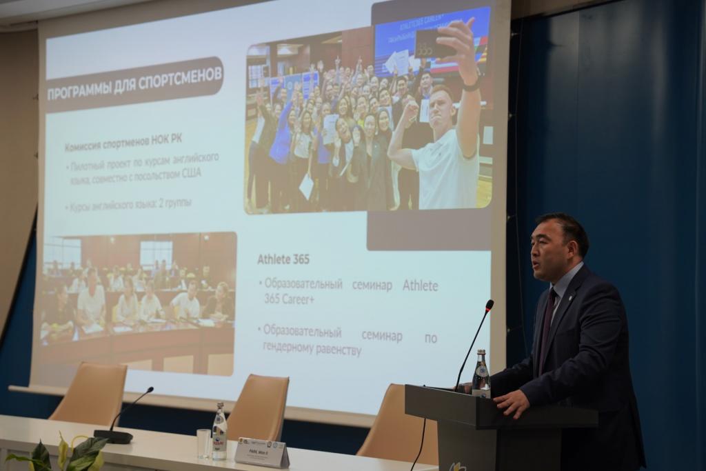 Участникам лекции была представлена информация об образовательных инициативах НОК Казахстана, направленных на развитие профессионального сообщества в сфере физической культуры и спорта. В частности, речь шла о программах Международного Олимпийского комитета, таких как Athlete 365 Career+ семинаре по вопросам карьерного развития спортсменов, программе олимпийских стипендий для обучения тренеров зарубежом и технических курсов для тренеров сборных команд, проектах по обеспечению гендерного равенства и безопасности в спорте, а также программах по предотвращению манипуляций в спорте.