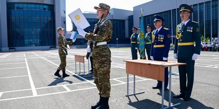 В Астане солдаты военно-научного взвода, а также роты охраны и обеспечения Национального университета обороны РК дали клятву на верность Родине.