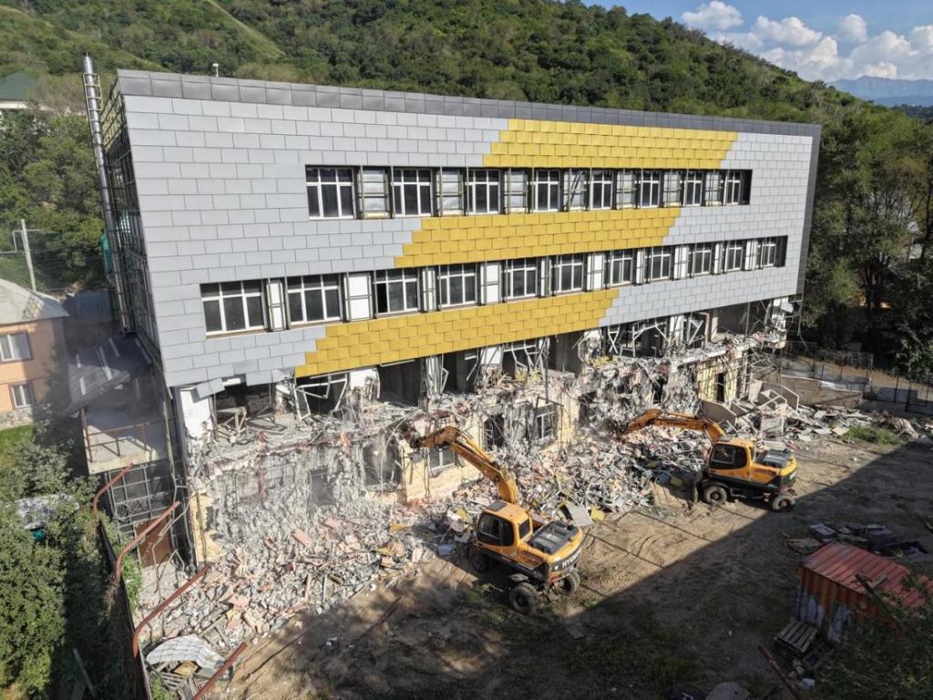 Четырехэтажное здание по ул.Нурмагамбетова, 374/1 признано незаконным. Снос начат накануне с участием судебных исполнителей. Об этом сообщает управление градостроительного контроля Алматы.