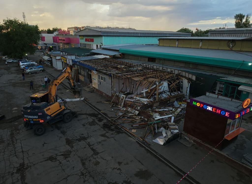 Более 2000 кв. м торговых площадей крупного рынка в мкр. «Аксай-4» сносят по решению суда, сообщает управление градостроительного контроля Алматы.