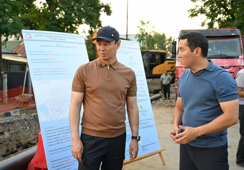 Аким Алматы Дархан Сатыбалды в ходе рабочего объезда Алмалинского района ознакомился с ходом строительства сетей водоотведения на ул. Туркебаева, на участке от ул. малая Абая до ул. Карасай батыра, в Алмалинском районе.