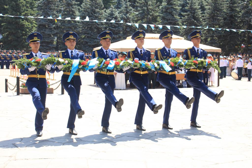 Выпускников поздравил заместитель министра обороны – главнокомандующий Силами воздушной обороны Вооруженных сил генерал-майор Кайрат Садыков. Он поблагодарил руководство и преподавательский состав вуза за подготовку высококлассных специалистов, которые уже в ближайшие дни приступят к службе в войсках.