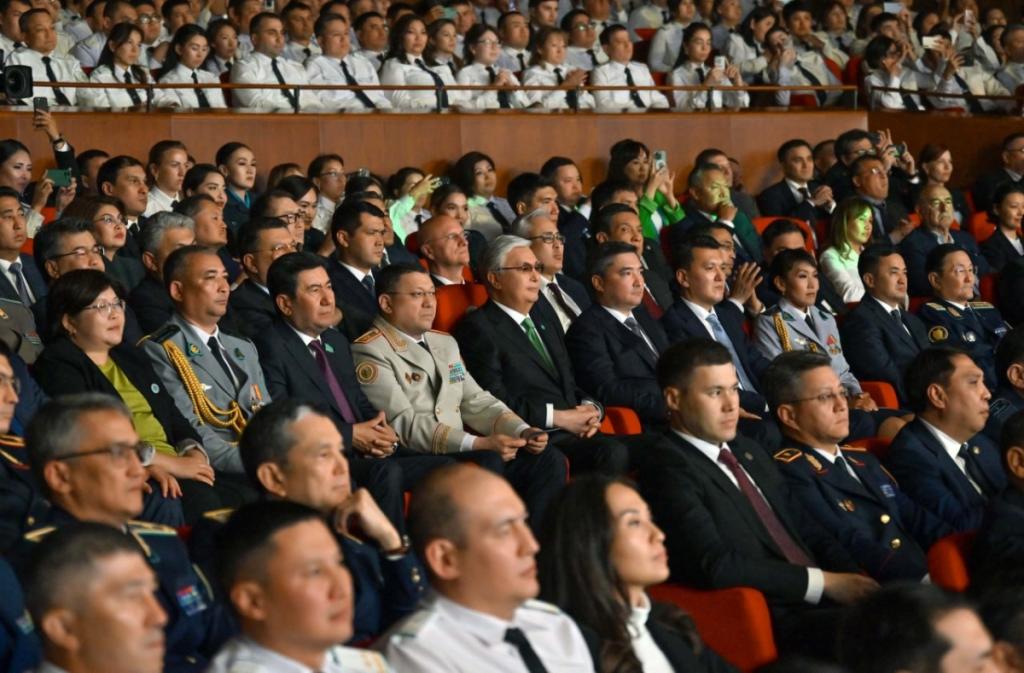 В концертную программу вошли музыкальные произведения отечественных артистов. Трогательной нотой мероприятия стал реквием в память о сотрудниках правоохранительных органов, погибших при исполнении служебного долга. Еще одним теплым моментом представления стало исполнение песни учениками полицейских классов «Жас сақшы».